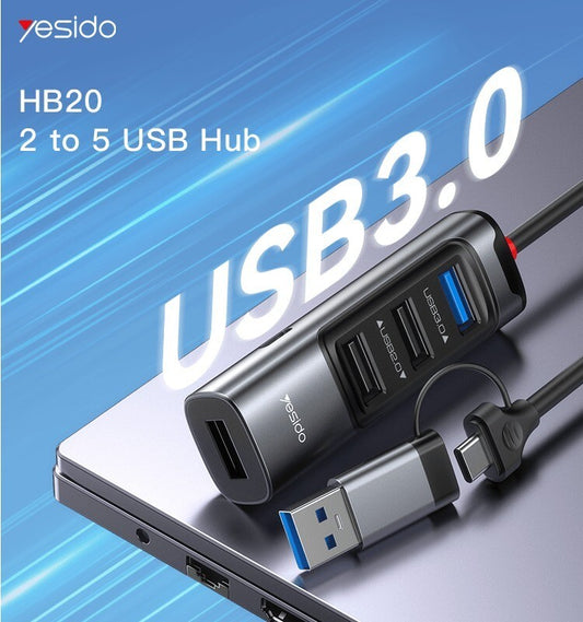 YESIDO USB USB-C Hub Adapter Converter USB 3.0 3xUSB 2.0 PD 100W 7 Port 5 Gbps Type-C