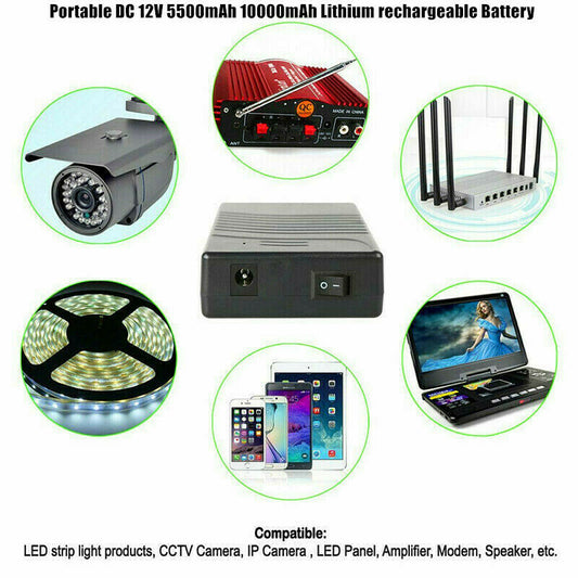 Portable DC 12V 5500mAh/10000mAh Lithium rechargeable Battery Pack 5.5X2.1mm
