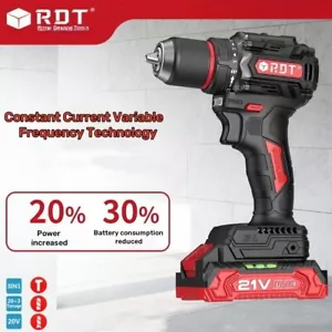 Drill Driver Cordless Impact Hammer Drill Brushless w/2pcs 21V Battery 2 Speed YS167