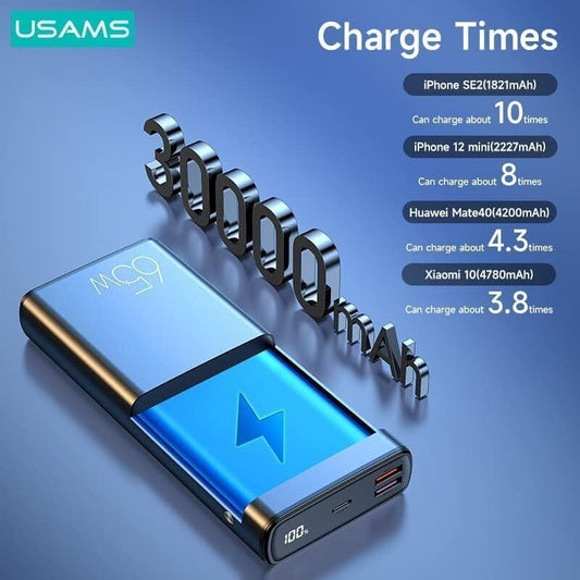 USAMS 65W Fast Charging Power Bank 30000mAH + 100W Cable PD QC Charger Battery YS89