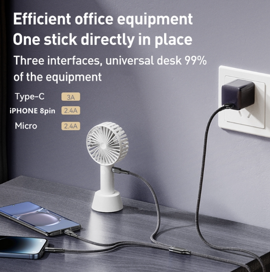 Yesido 3A 3-in-1 Charging Cable USB Type-C 8pin Micro-USB For Iphone Samsung YS38