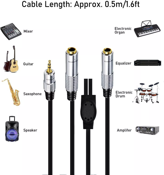 50CM Aux 3.5mm Male to Dual 6.35mm Female Y Splitter Cable 1 to 2 Stereo Adapter ES01
