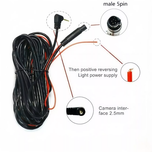 5.5m 5 Pin Dash Cam Cable 2.5mm Male Plug Rear View Camera Extension for Car Truck PS24