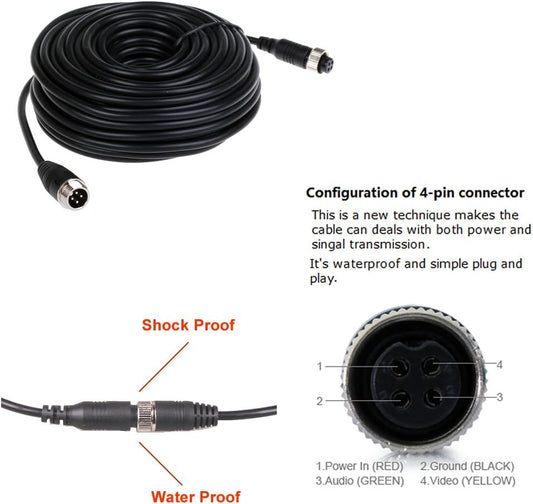 4 Pin Video Extension Cable Wire For Bus Truck Reversing Rear Camera 5 10 15 20m