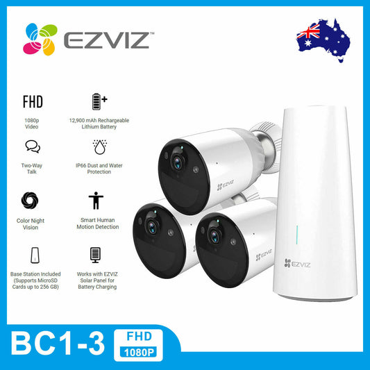 1080P Outdoor Wifi IP Security Rechargeable Battery 3x Camera W/ Base KIT Solar CCTV system