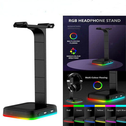 Headphone Headset RGB Stand Rack Desktop w/ 2 USB Charging