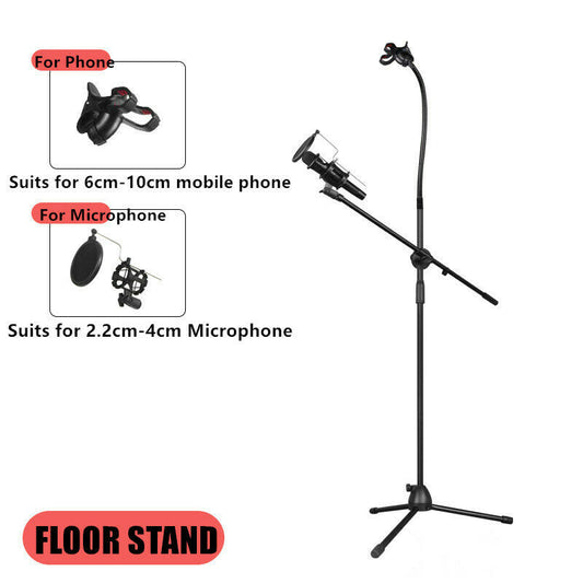 Telescopic Boom Microphone Mobile Phone Floor Stand Adjustable Mic Holder Tripod
