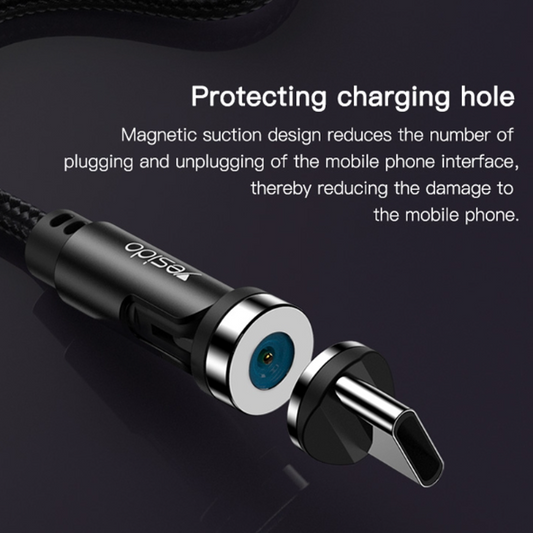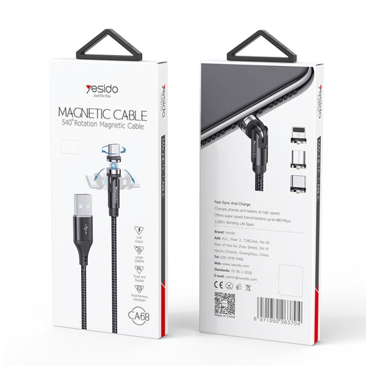 Yesido CA86 Rotating Magnetic Type-C Fast Charging Black Fabric Cable