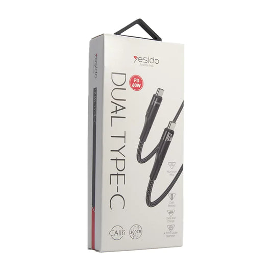 3m Yesido CA116 60W Fast Charging Cord Type C to Type C Braided Data PD Cable