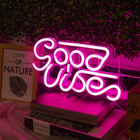 Good Vibes LED Sign Neon Light Blue or Pink USB Powered