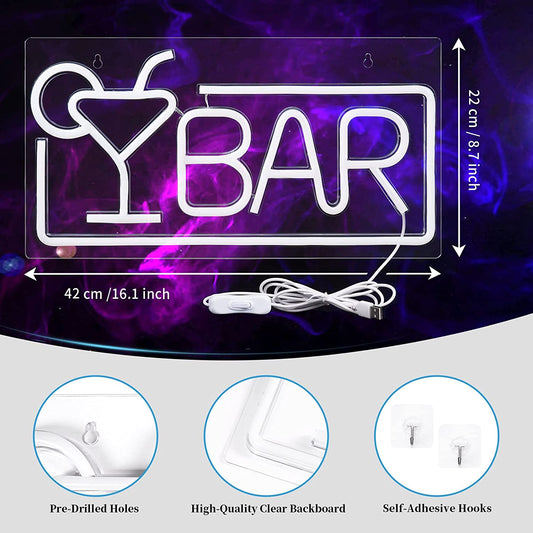 BAR LED Sign Neon Light USB Powered 42x22cm