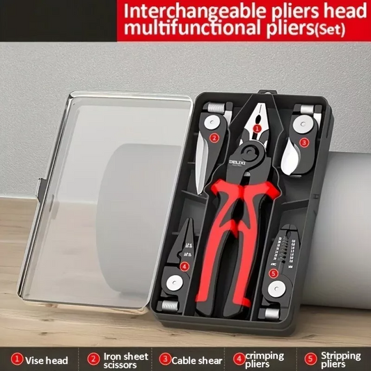 5-in-1 Multifunctional Pliers Interchangeable Heads Wire Cutter Linesman Strip YS190