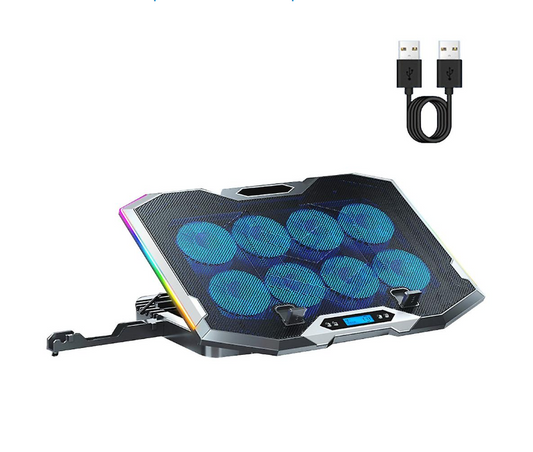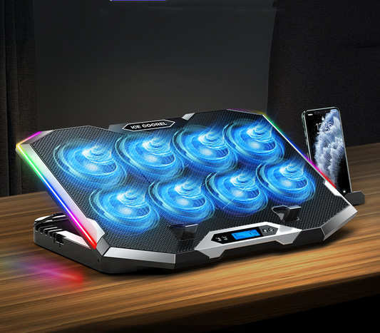 K10 Gaming Laptop Cooling Pad Phone Stand with 8 Cooling Fans RGB Lights