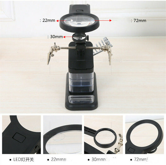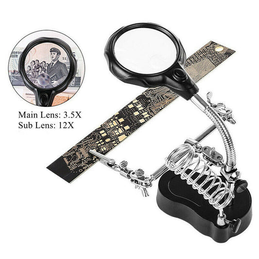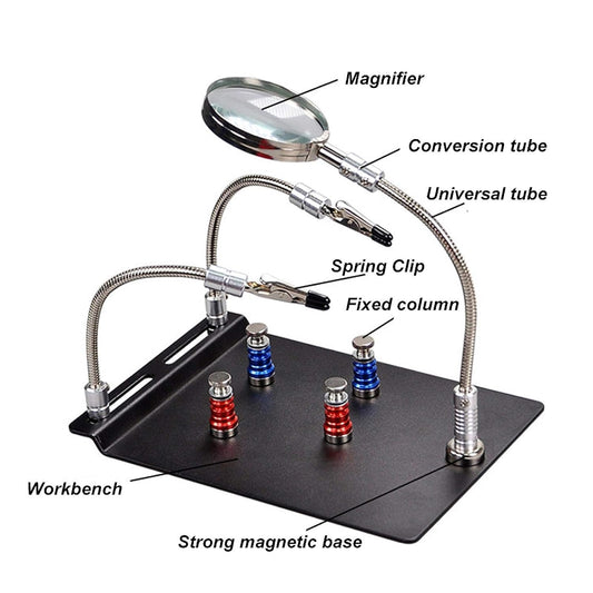 Magnetic Soldering station Circuit PCB Clamp Board Holder W/ 3x Magnifier Glasses Tools
