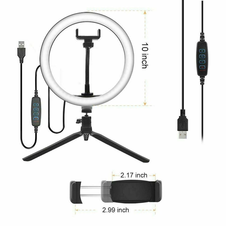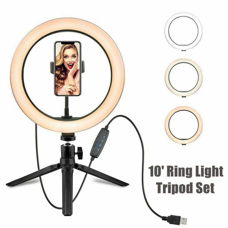 1) 10' LED White/ Warm White Ring Light with Table Tripod Stand, USB powered