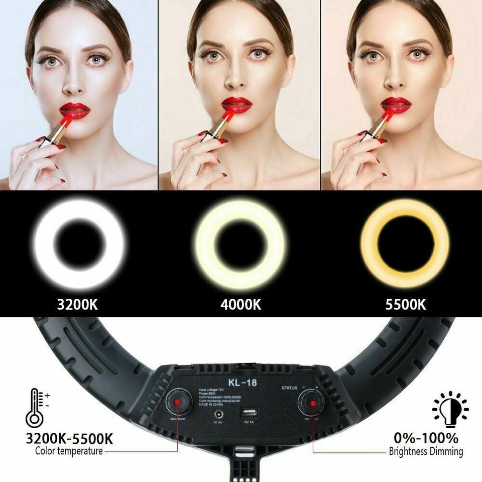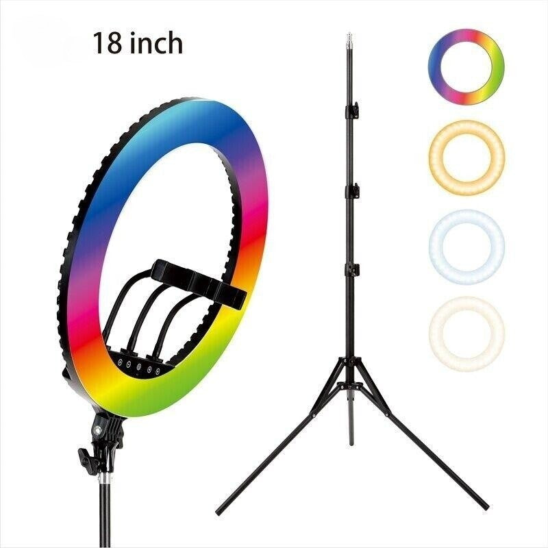 4) 18' LED RGB and White/ Warm White Professional Ring Light with 2.1m Floor Tripod Stand, DC power supply