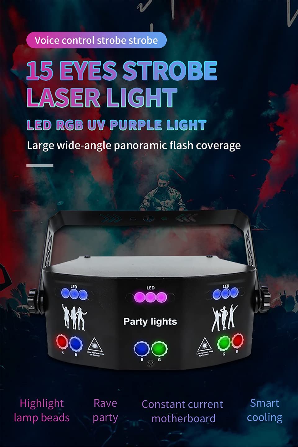 15 Eyes Laser Party Lights LED RGB UV DMX Strobe Stage Light