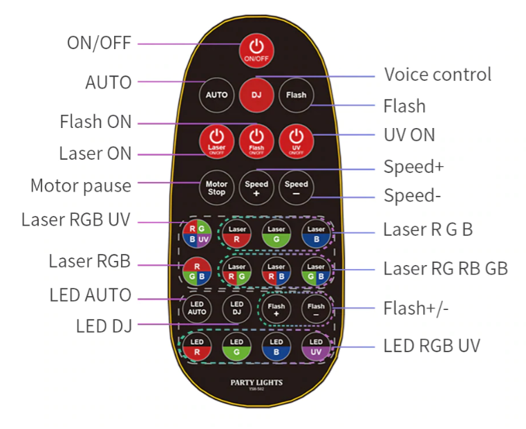 - Adjust the Rotation Speed of the light and Flash: Unlike other stage lights, our Dj Party light can adjust the rotation speed of the light(Speed up, Slow down, Stop Motor) and Flash Speed(Flash+, Flash-),Be free to adjust the speed of light and flash according to your requirements, creating a wonderful and comfortable lighting environment for you.