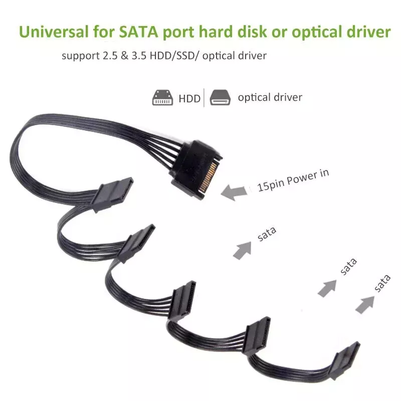 - SATA 15 Pin Male to 5 SATA 15 Pin Female Power Cable