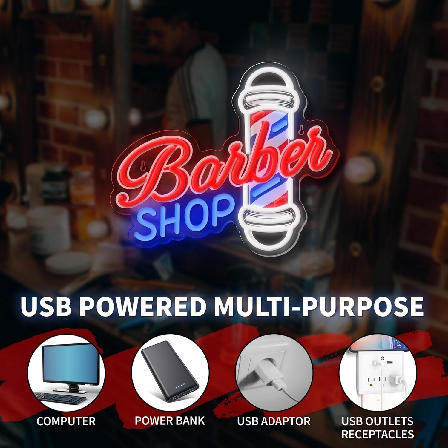 33x39cm USB Powered Barber Shop Neon Sign LED Sign for Hair Salons & Barbershop