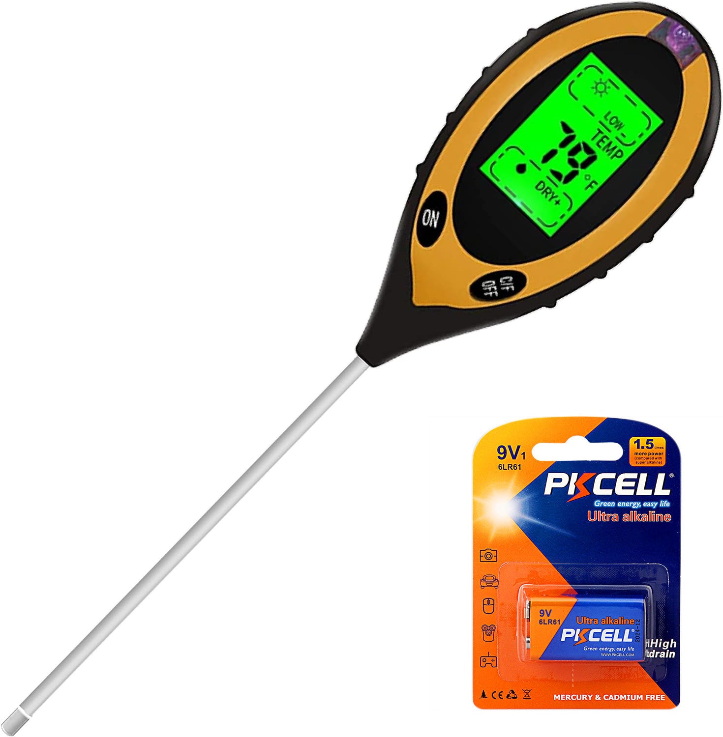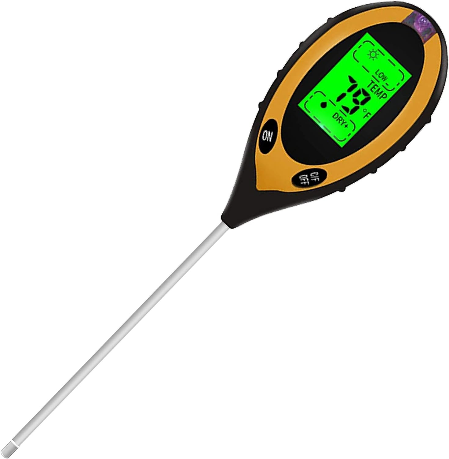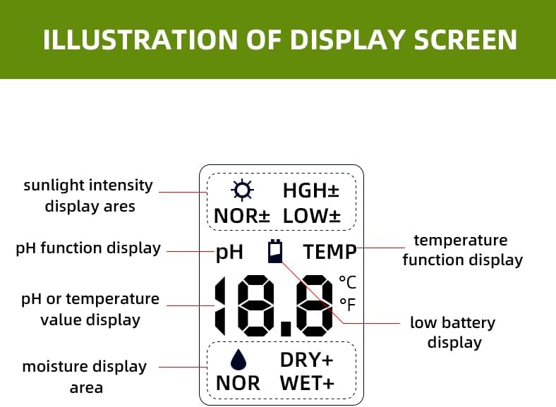 - The sensitive 200mm probe and light sensor window provides 5 units of accurate & precise measured results, Measures sunlight (9 levels), soil moisture (5 levels), soil PH (12 levels) and temperature (°C & °F)