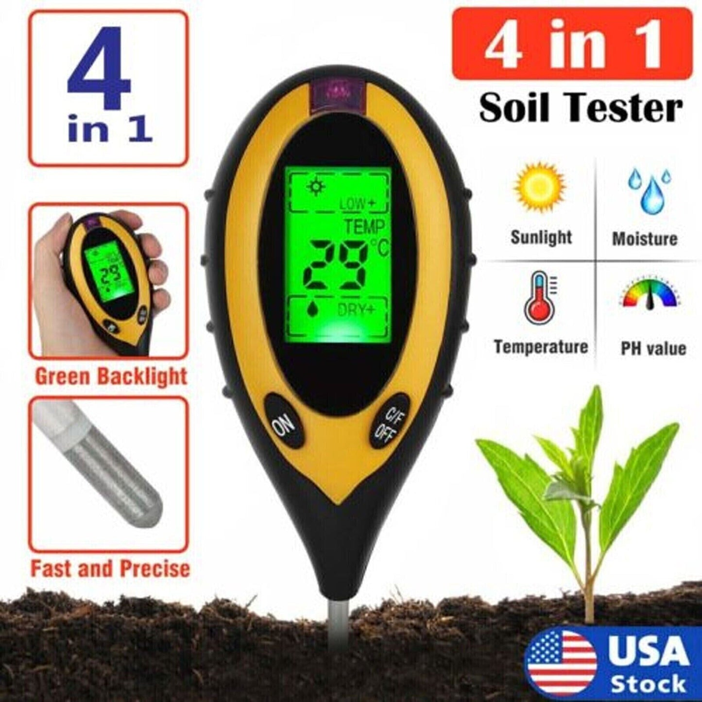 - 4-in-1 Soil Tester for plants and lawns