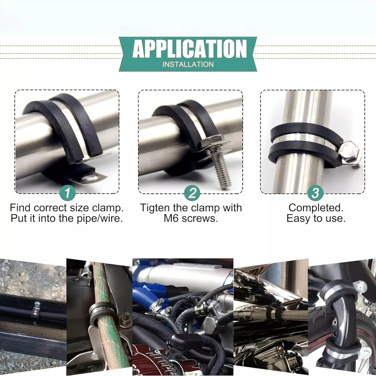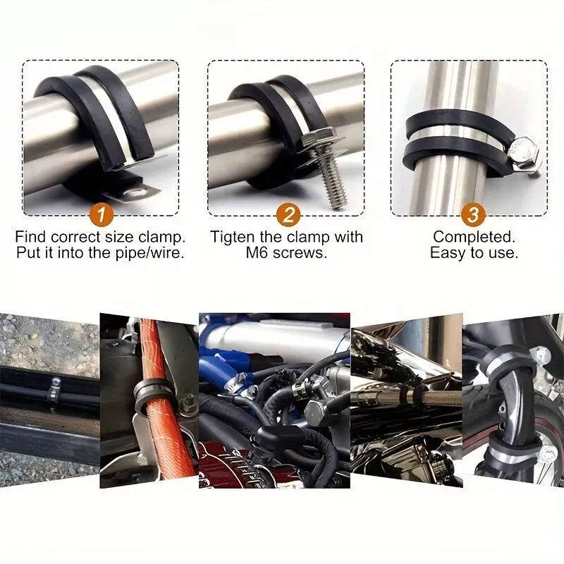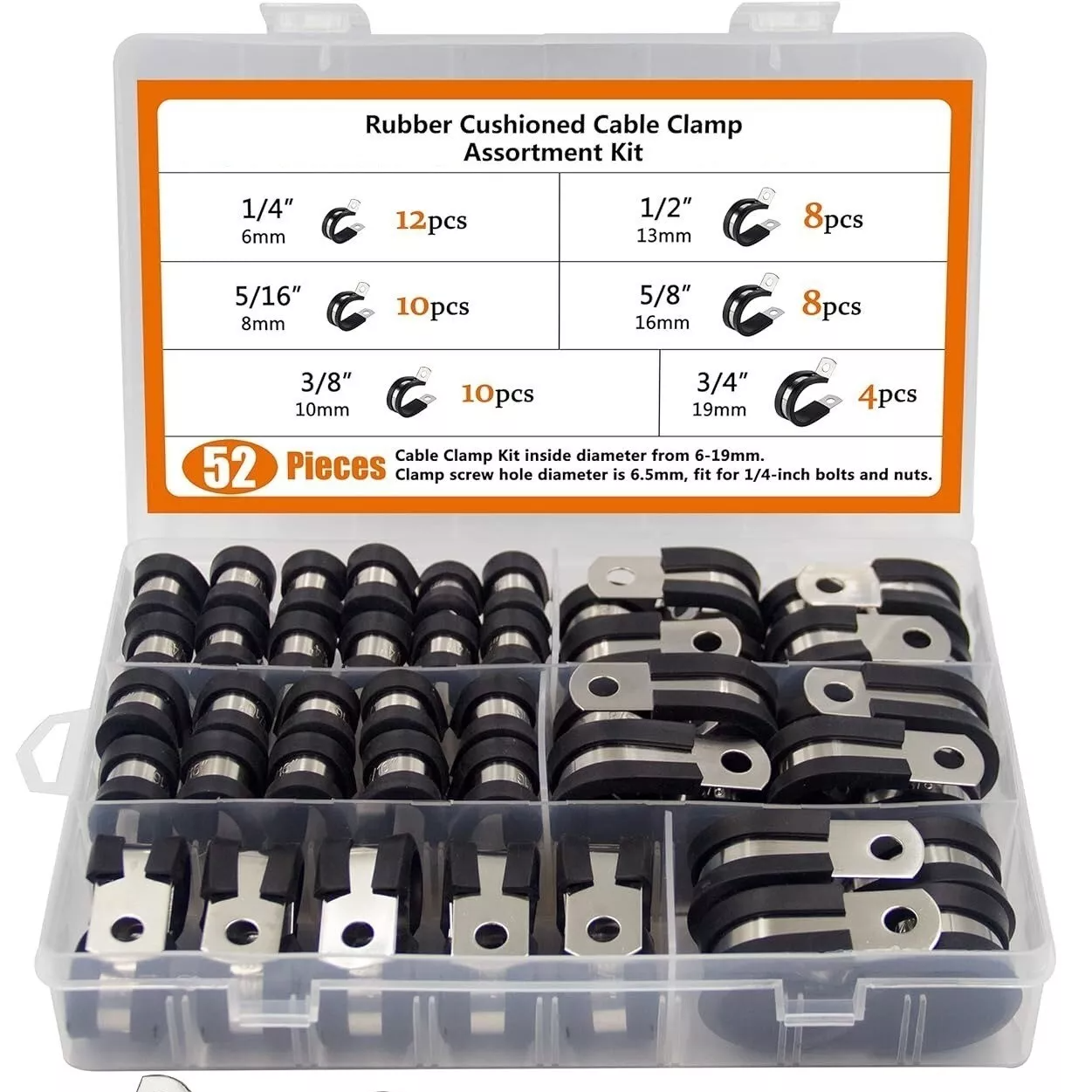Description: This 52pcs Stainless Steel Cable Clamp Assortment Kit is designed to provide a reliable and durable solution for your automotive, industrial, marine, and household projects. Made from high-quality 304 stainless steel and rubber cushioning, these clamps offer a strong, secure grip without damaging the pipes, hoses, or cables. Perfect for use in harsh environments, including saltwater/air conditions, they are ideal for managing wiring, cables, hoses, and pipes across various applications.