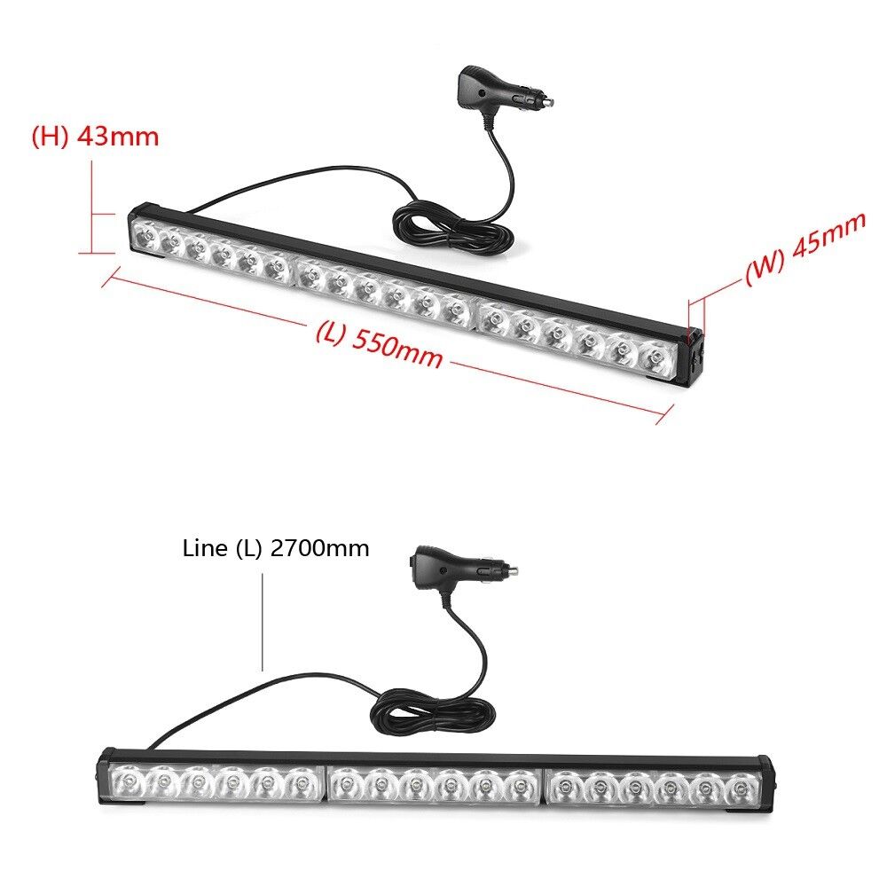 Easy to install LED Light bar for your vehicle. It has 14 flashing modes / functions that can be changed from the cigarette lighter switch. The light will function on the last saved mode selected.