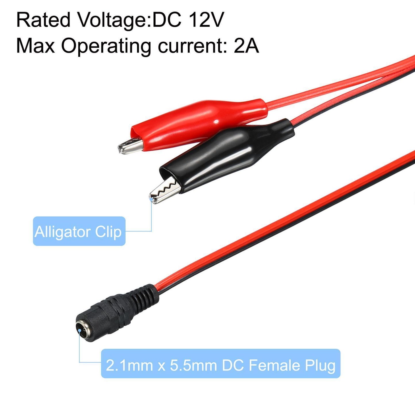 60cm DC 12V 2A 5.5mm x 2.1mm Female Jack to Alligator Clip Power Cable