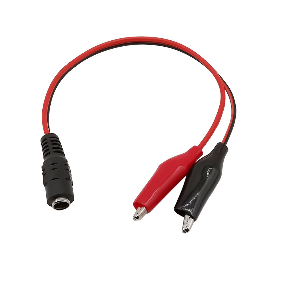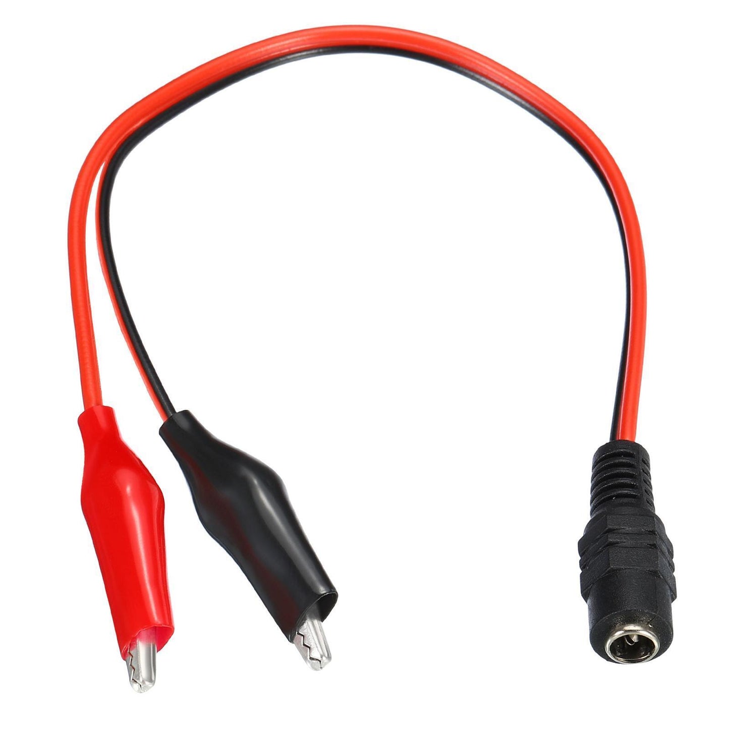Red: Positive electrode, Black: negative electrode DC 12V Power Male or Female:5.5 x 2.1mm Alligator clip size: Middle-sized Cable length: about 60cm