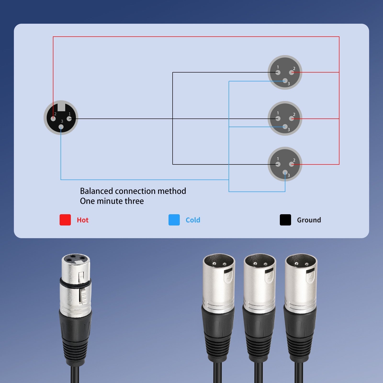 Connectors: 1 XLR Female to 3 XLR Male (3-Pin)