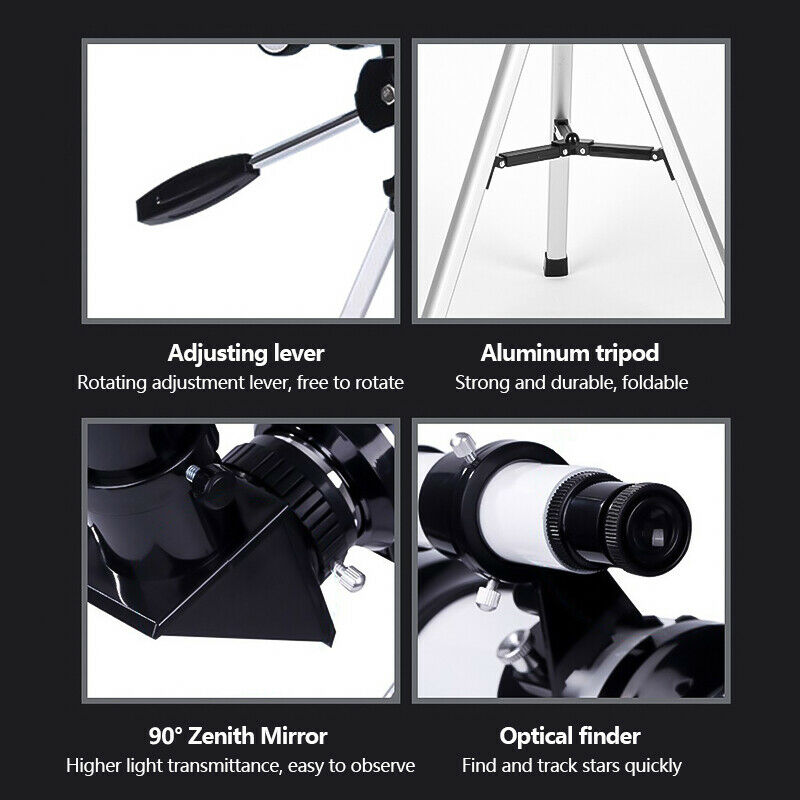 Accessories : 1.5X erecting eyepiece and 3X Barlow lens increase the power of telescope to let us easier to focus moon and stars, The star gazing telescope have different magnification for you to choose. Smartphone adapter make it easily to observe with cellphone. And the star target planisphere helps you to know various stars