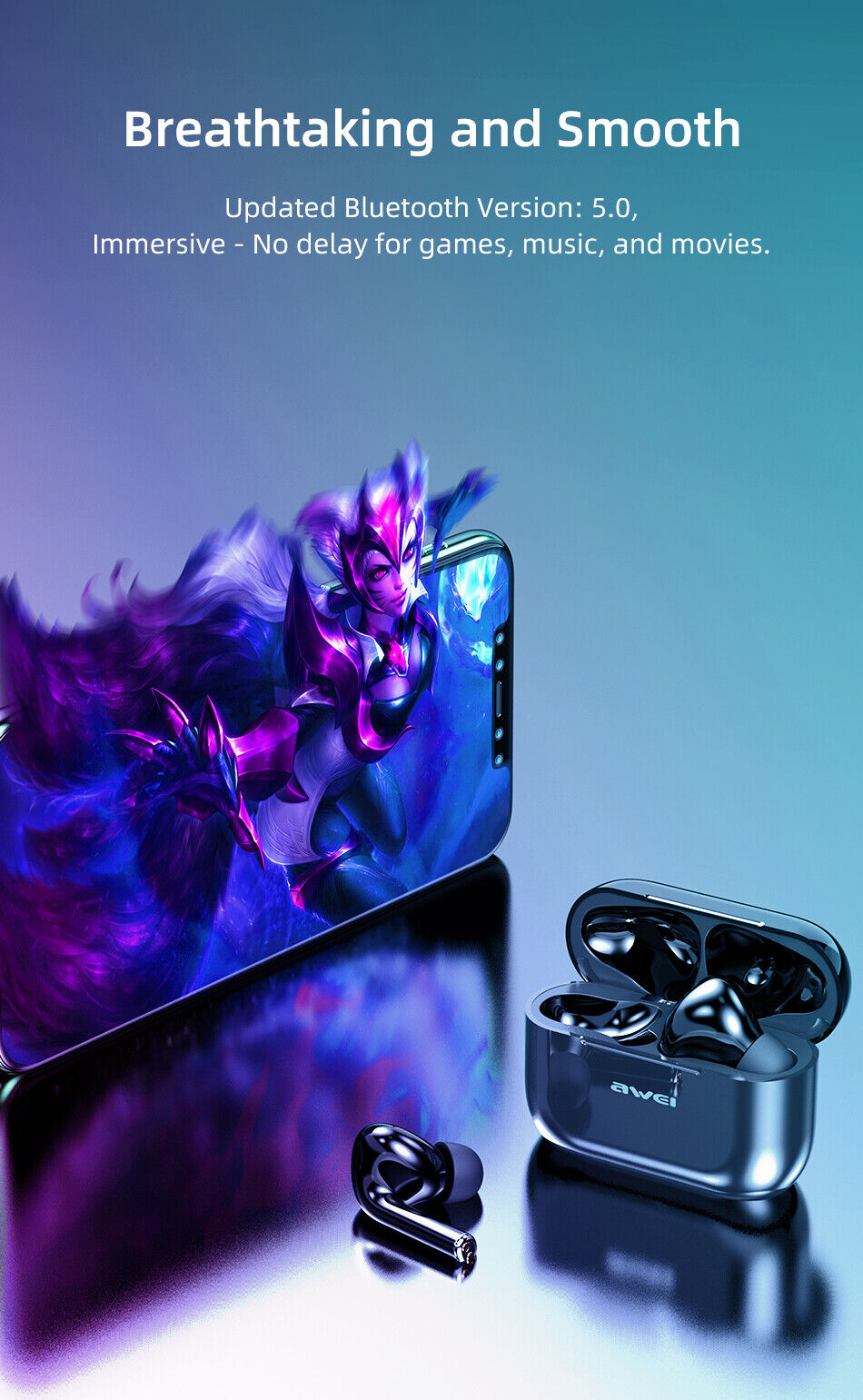 AWEI T29 True Wireless Earbuds (QS55) Bluetooth 5.0 W/Mic Touch Control Earphone