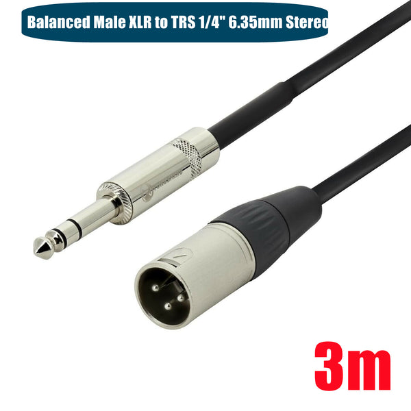 Balanced TRS 1/4" 6.35mm Stereo Jack to Male XLR Cable SE3