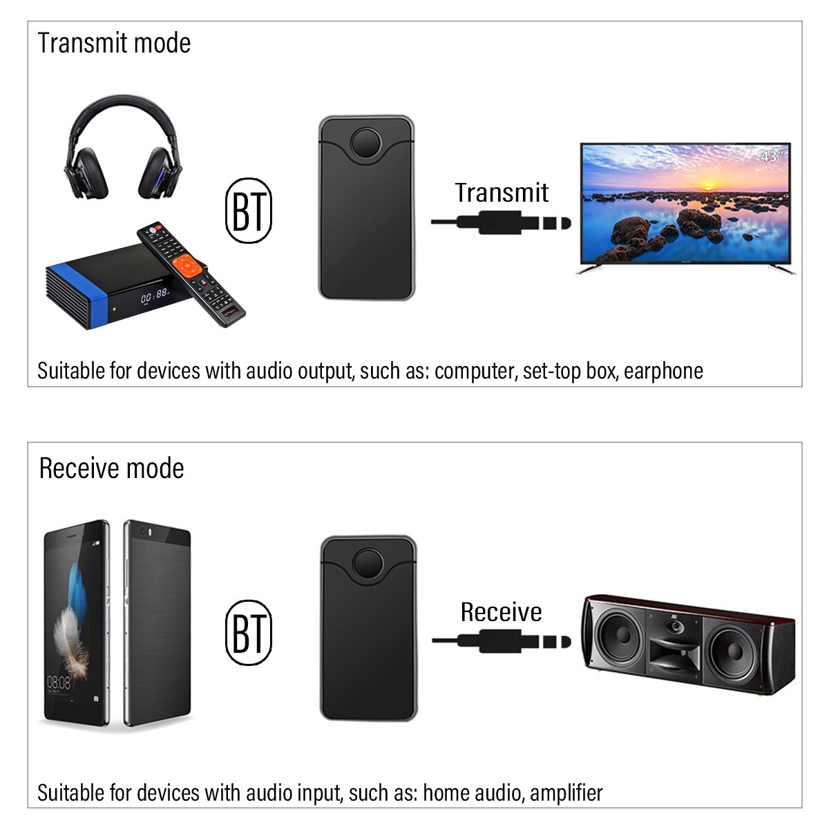 Connect your bluetooth audio devices to legacy devices with ease. Can be used for connecting your bluetooth speaker/headphones to your TV; or, can be used to connect your bluetooth phone to your car AUX port. Battery operable (rechargeable) upto 6 hours runtime.