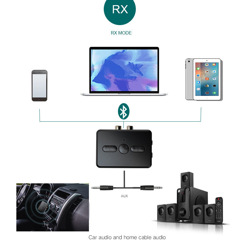 The receiving mode can be used in home, car and other scenes. It can enable speakers without Bluetooth-compatible function to have Bluetooth-compatible function, realize wireless connection with mobile phones, tablets and other devices, and bid farewell to wired constraints.