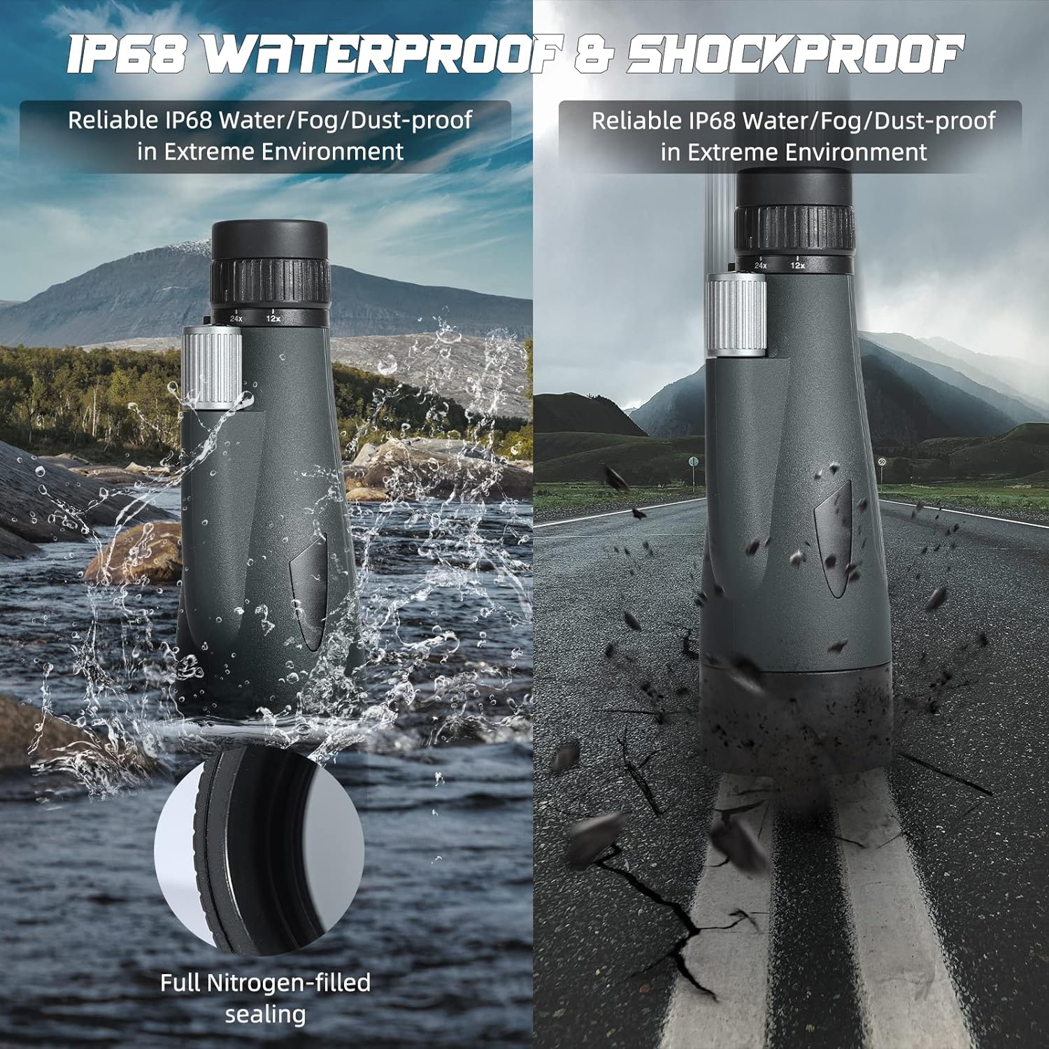 - Waterproof & Fog Proof: Compact and sturdy body make it withstand the heavy weather, the mirror is full of the high-purity nitrogen, waterproof and antifogging. You can use it in raining day and humid environment.