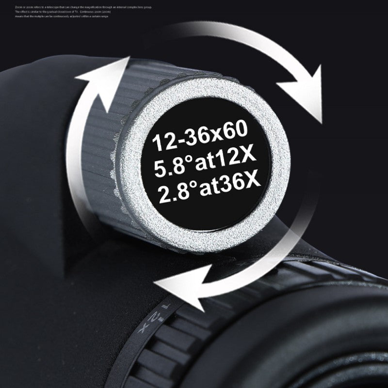 - Equipped with 60mm objective lens to bring the world 12-36x closer in front of you.