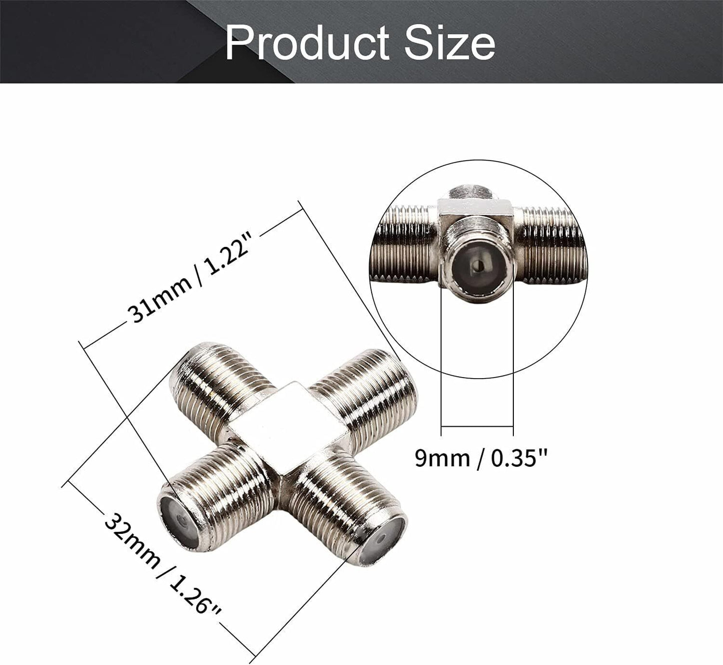 Four-Way Connector F Female F-Type Coax Cable Splitter Cross Adapter 4-Way TV M96