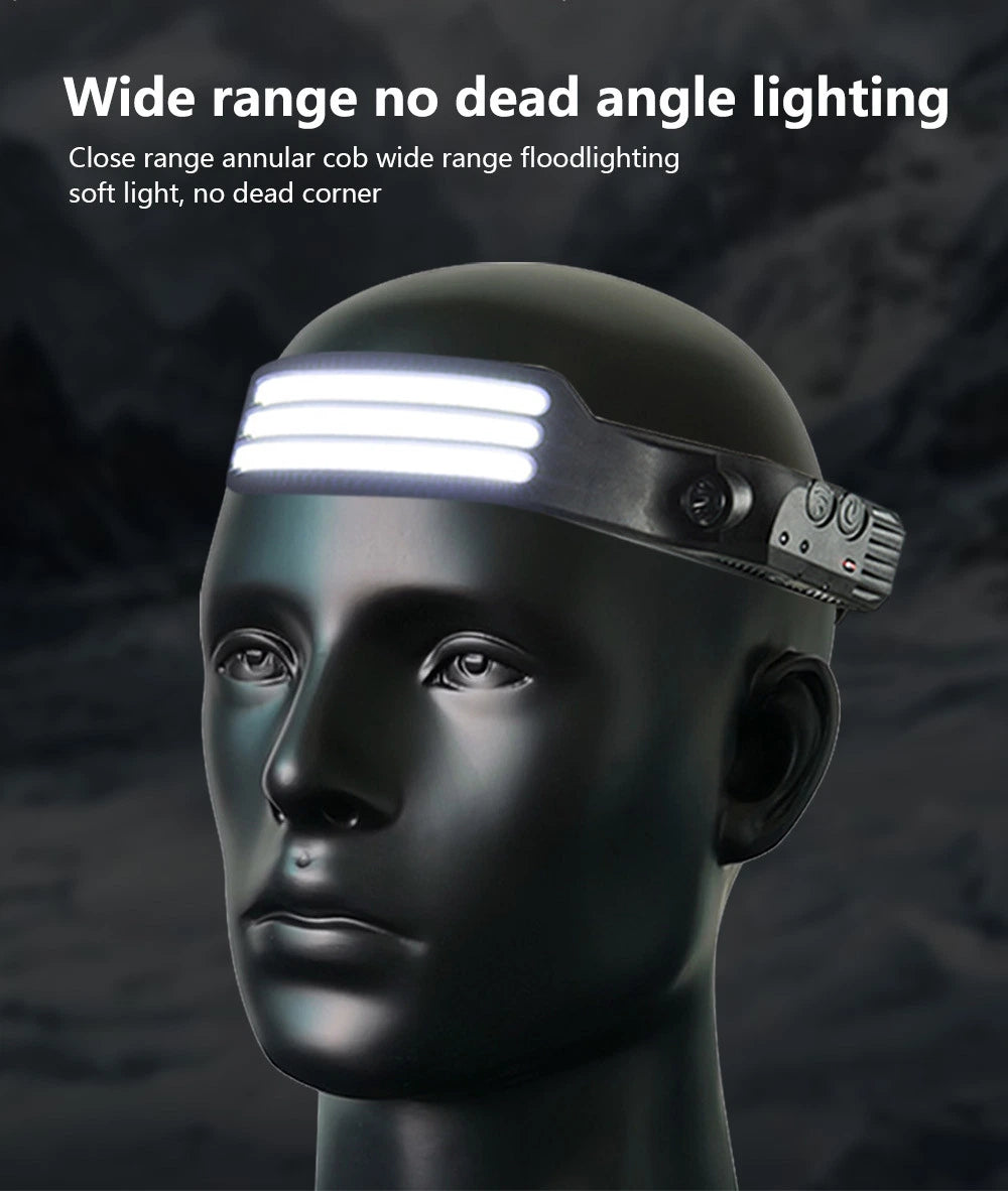 Handwave Sensor COB Headlamp (RS03) 3 Strips COB Zoom Rechargeable Head Light