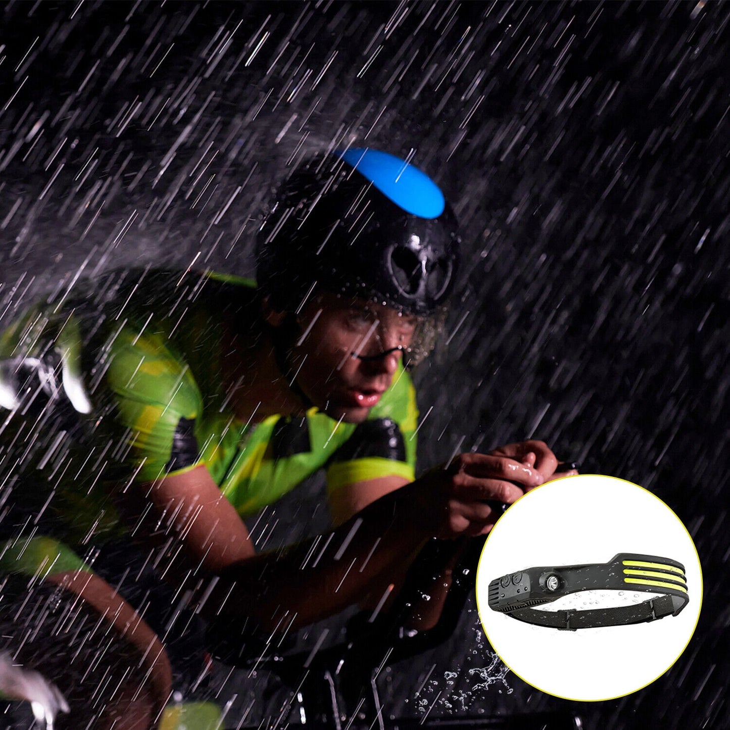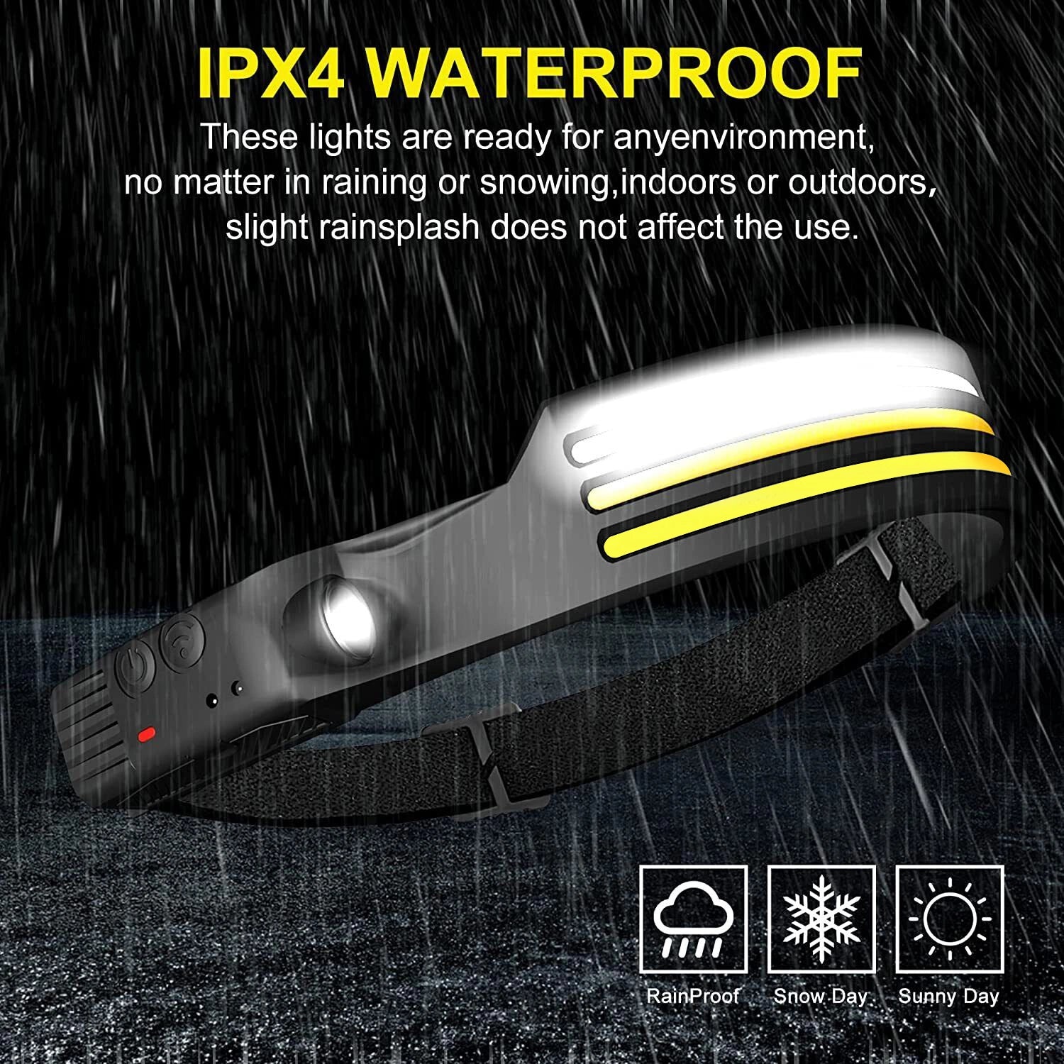 - (Lightweight & Adjustable Headband): The led headband is made of ABS and silicone; it is soft and comfortable; just only 3.52 ounces. It's possible to fold but not affect the use; light weight and small size design can easily fits in your pocket. IPX4 waterproof means it is protected against splashing water from all angles; you don't need to worry if it rains or snow unexpectedly.