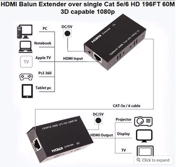 - The HDMI extender uses cat-6 cables (recommended) up to 60 meters instead of the HDMI cable to transmit high definition signal, to reduce the cost.