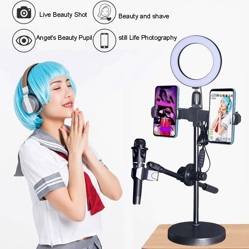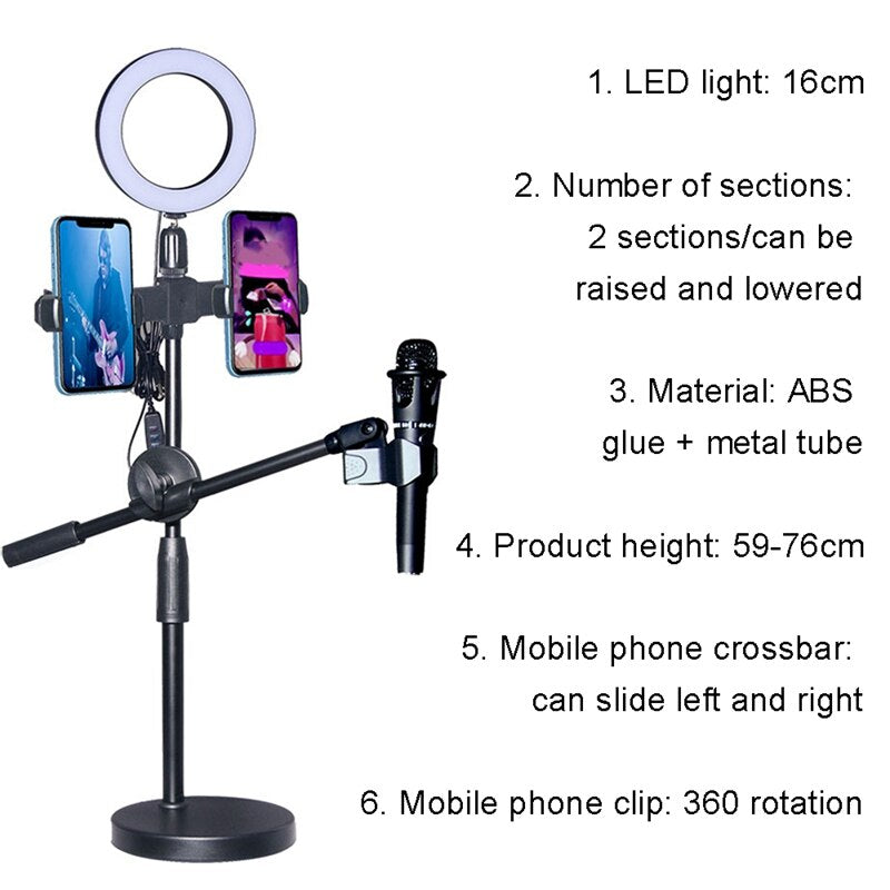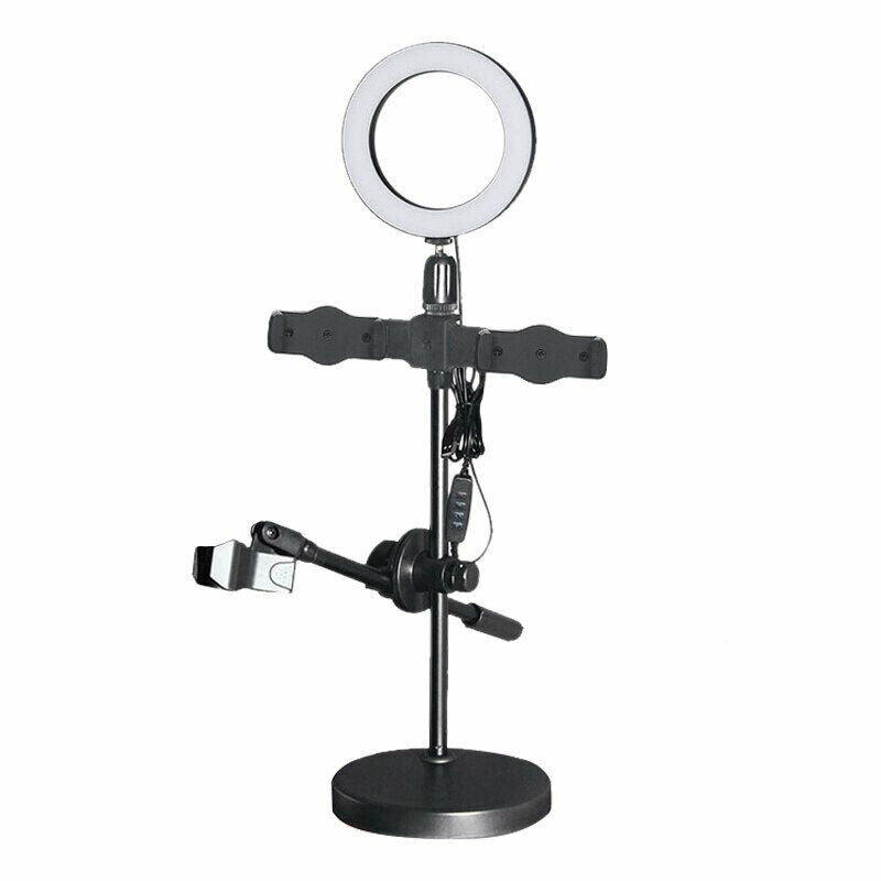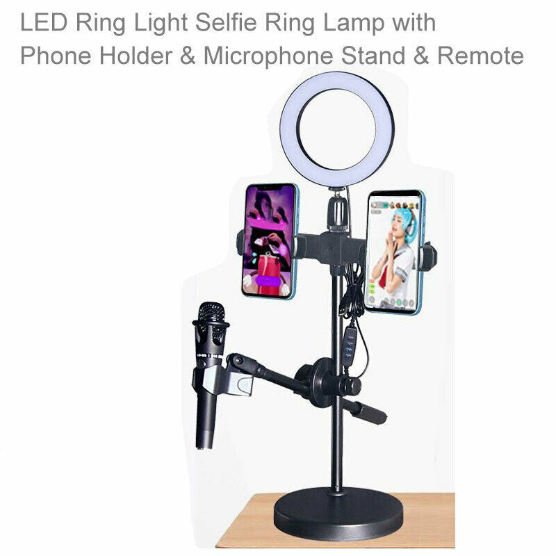 LED Ring Light W/ Phone Holder & Microphone Holder Table Stand