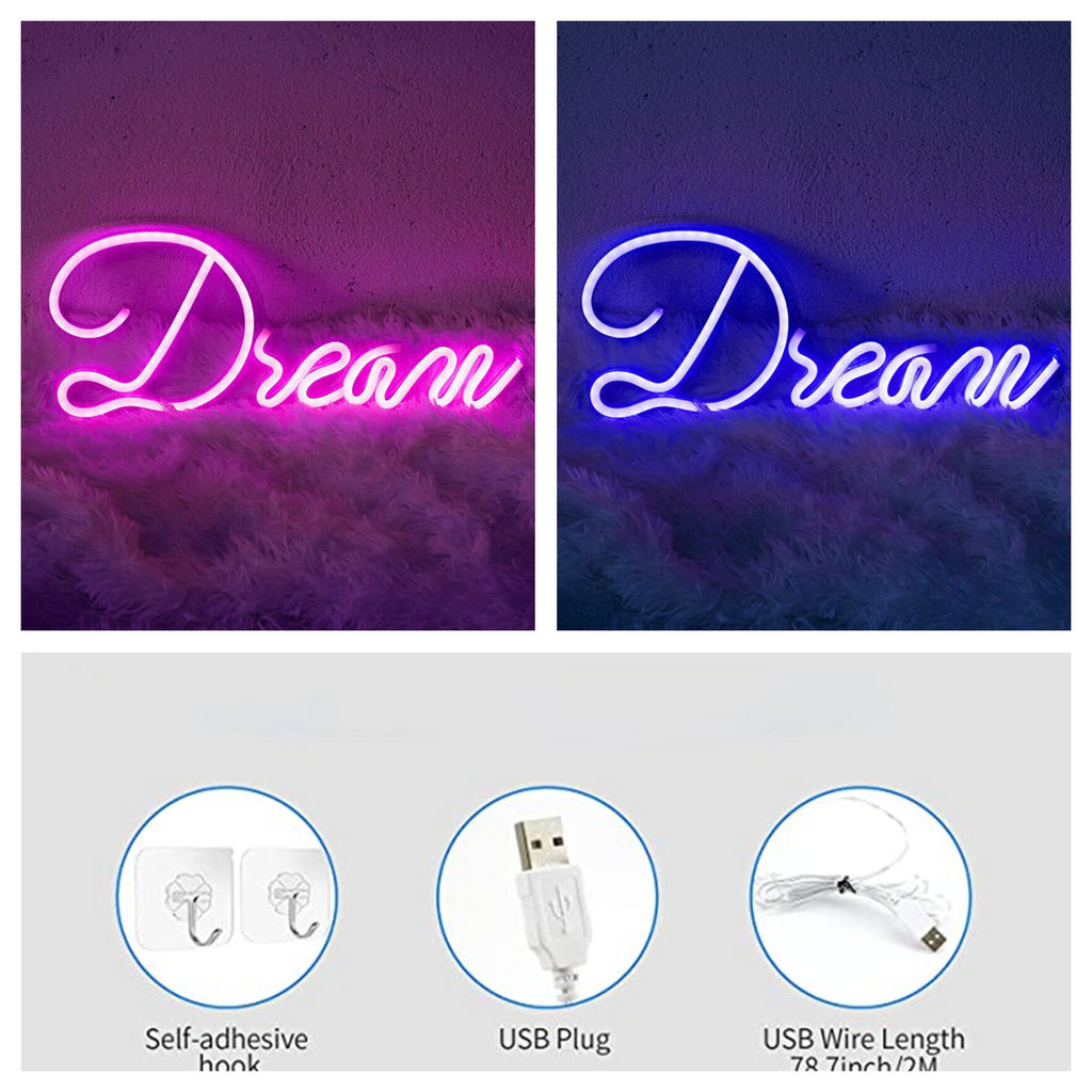 Dream LED Sign Neon Light Dream Blue or Pink USB Powered