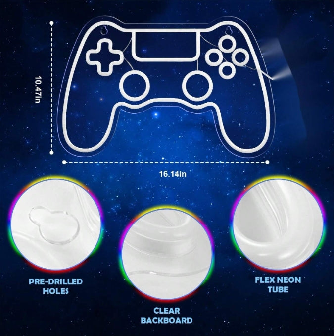 4.Easy to install, there are hook holes in the back of the game modeling light, hang the game neon light on the bedroom wall decoration or place it in the game area of the party to brighten your celebration.