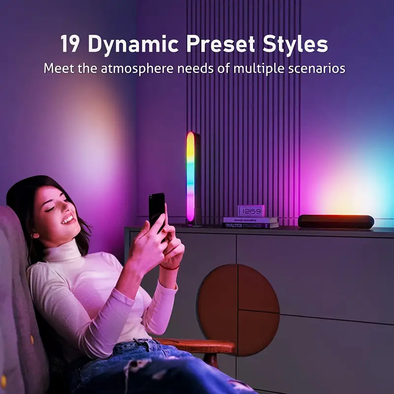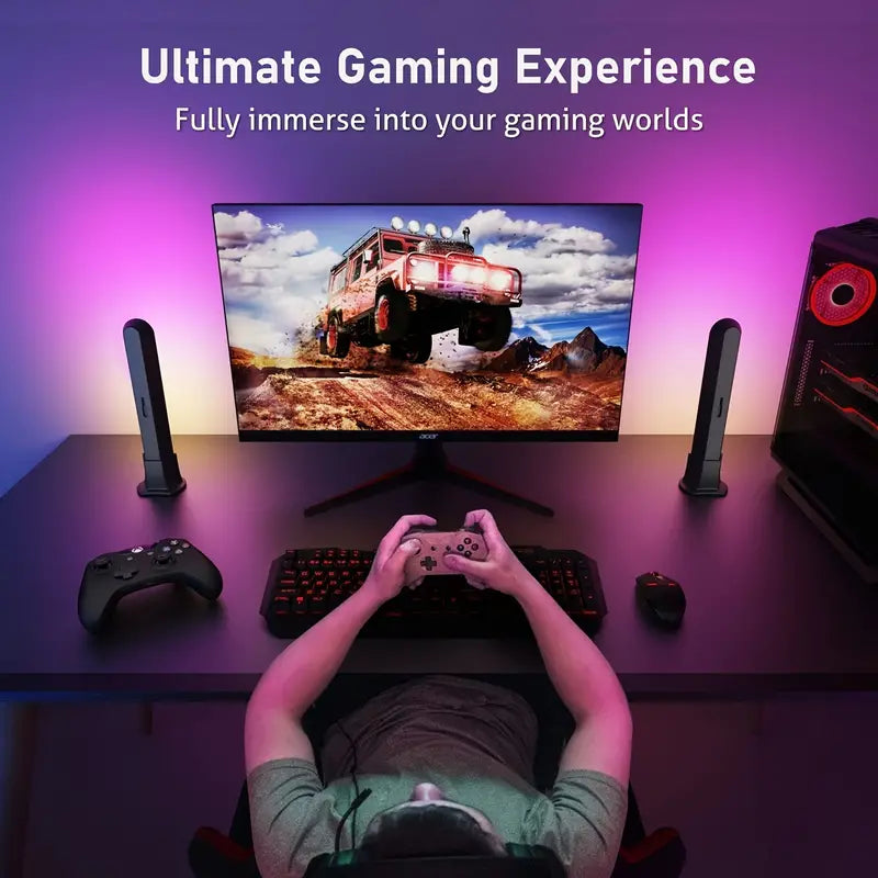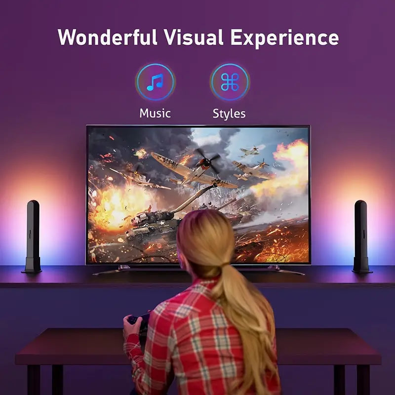 - 【Superb Visual Effects】RGB light bars, More display modes, Design your own real time music sync ambient light.
