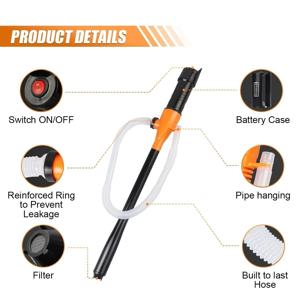 This portable electric liquid transfer pump is designed for fast and easy pumping of water, fuel, oil, and other non-corrosive liquids. Simply insert the suction tube into the liquid source, turn on the switch, and transfer liquids without spills or mess.