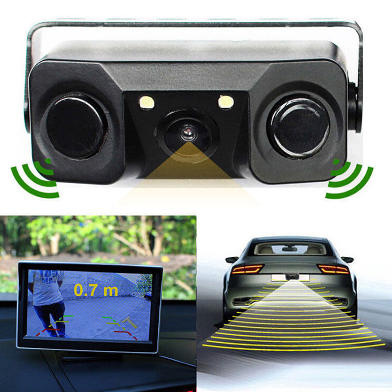 *2 In1 car reverse backup parking radar rear view camera with parking sensor