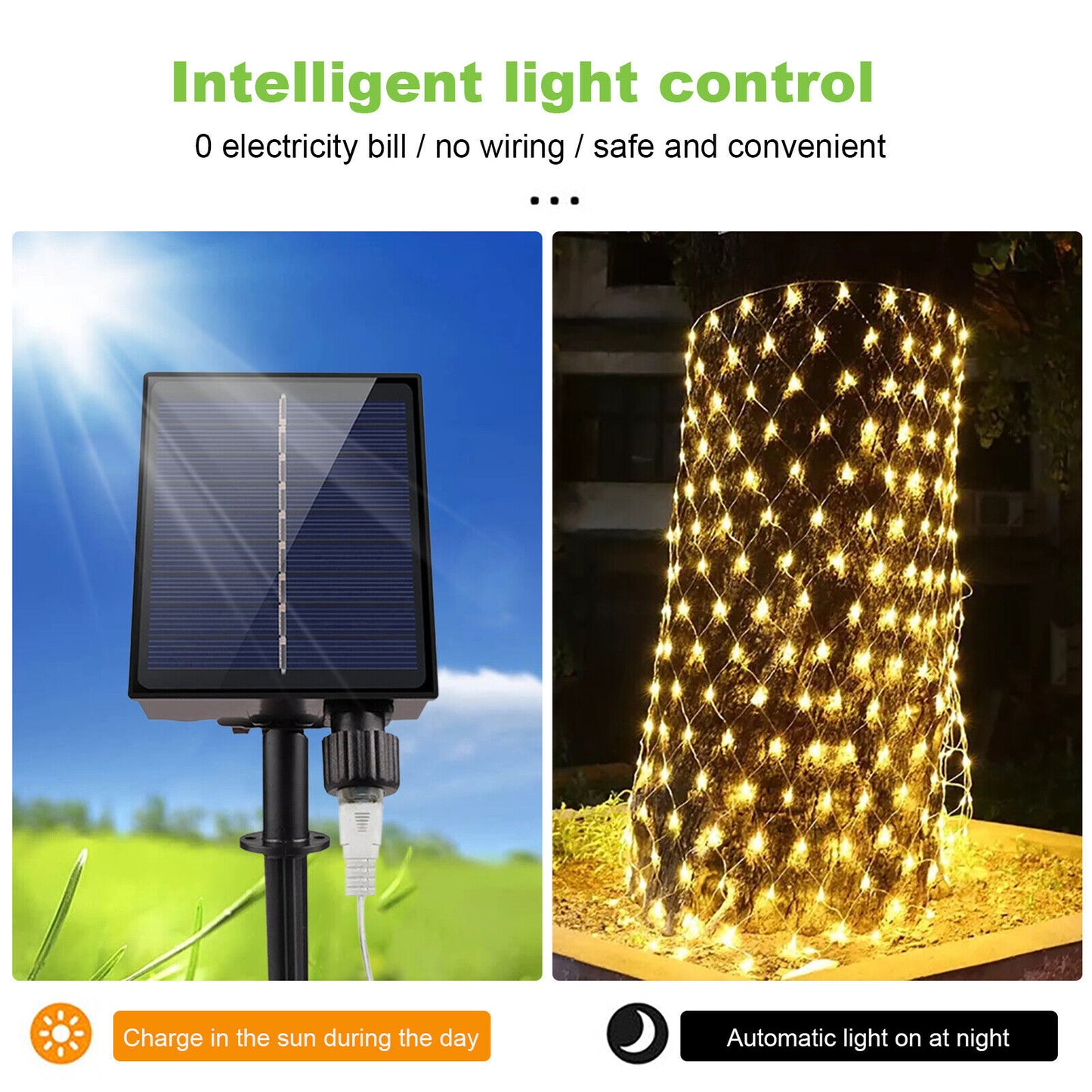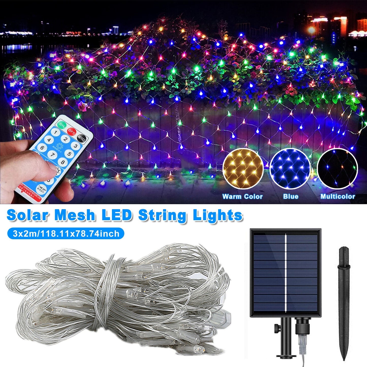 Solar 3mX2m Net Fairy Lights Joinable with Remote
