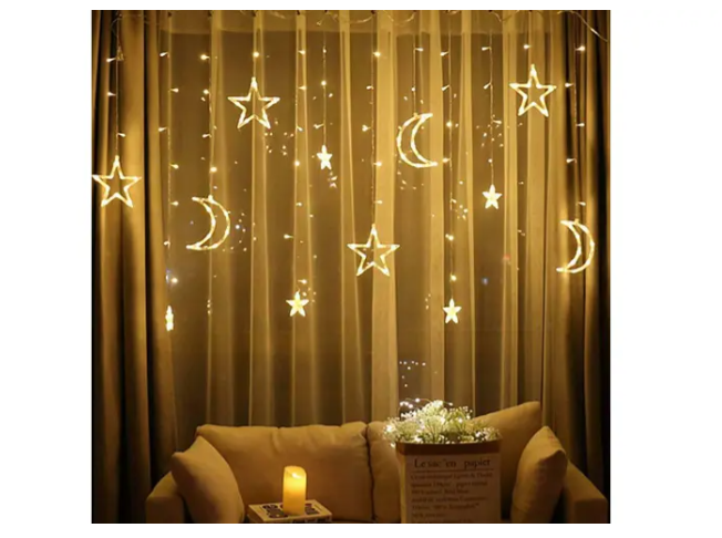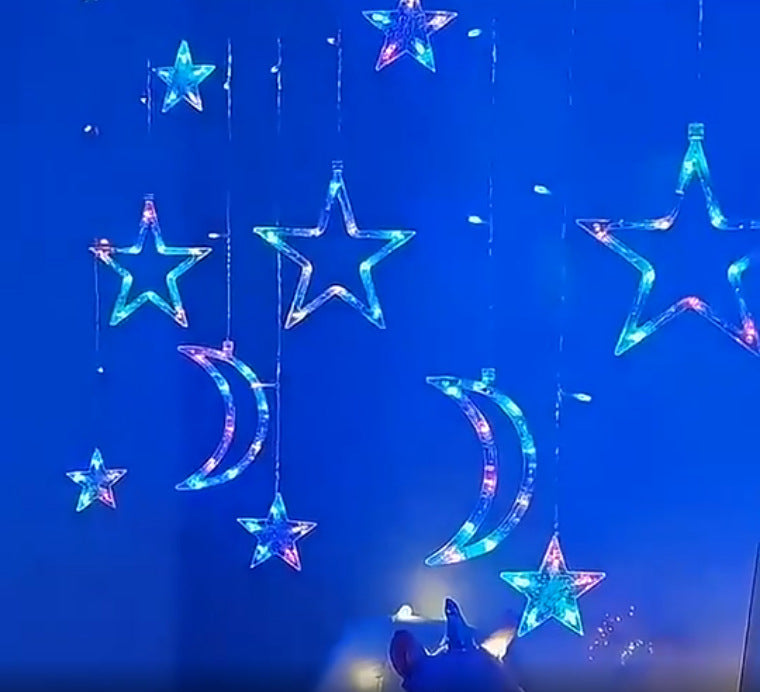 Twinkling Star Moon Fairy String Curtain Lights Window Room Decor Xmas With Plug